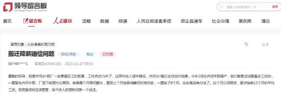 除了被撤銷高新技術(shù)企業(yè)資格之外,2023年11月27日,齊河永鋒鋼廠一名員工家屬在人民網(wǎng)“領(lǐng)導(dǎo)留言板”留言稱,永鋒鋼廠搬遷去臨沂臨港,今年3月份齊河本部停產(chǎn),“我們都是沒(méi)法跟著去工作的,一直留在齊河本部,廠里不給簽協(xié)議離職,就是每個(gè)月降低薪水,直到上個(gè)月按縣城最低標(biāo)準(zhǔn)發(fā)放,一直拖了8個(gè)月”,賠償卻要求按前12個(gè)月平均工資計(jì)算。