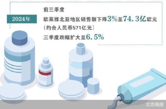 反觀歐萊雅整體業(yè)績,則難言樂觀。近兩年,歐萊雅增長放緩,尤其是曾支撐整體業(yè)績增長的亞洲市場及中國市場,出現多季度下滑。根據財報數據,2024年前三季度,歐萊雅銷售額達324.06億歐元(約合人民幣2494.88億元),同比增長6%。其中,中國所在的北亞地區(qū)成為唯一銷售額下滑的市場。根據財報數據,前三季度,歐萊雅北亞地區(qū)銷售額下降3%至74.3億歐元(約合人民幣571億元),三季度跌幅擴大至6.5%。2024年上半年,歐萊雅北亞市場銷售額54.75億歐元,同比下降3.1%。另外,二季度銷售額27.52億歐元,同比下降2.4%;而在一季度,歐萊雅北亞地區(qū)銷售額同比下降1.1%。