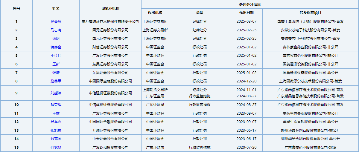 據(jù)悉,D類展示的是資格罰,采取動(dòng)態(tài)更新機(jī)制,并非固定名單,罰畢就會(huì)離開榜單,主要與保代被具體采取的監(jiān)管措施以及其期限掛鉤。