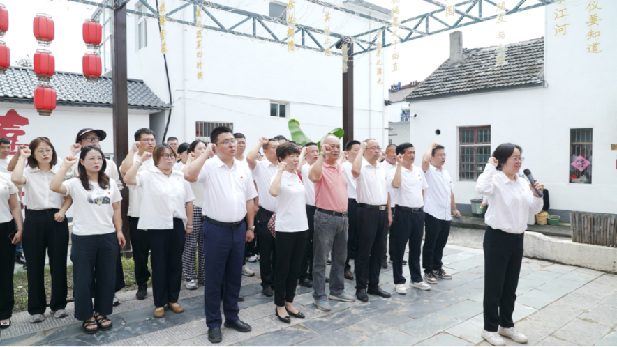 紅色“騎”跡,不僅是一次地理上的追尋,更是一次深刻的精神回溯。活動(dòng)最后,在場全體黨員莊嚴(yán)重溫入黨誓詞,鏗鏘誓言在研學(xué)館外回響,彰顯了六郎鎮(zhèn)黨員干部賡續(xù)紅色血脈、永葆政治本色的堅(jiān)定決心。