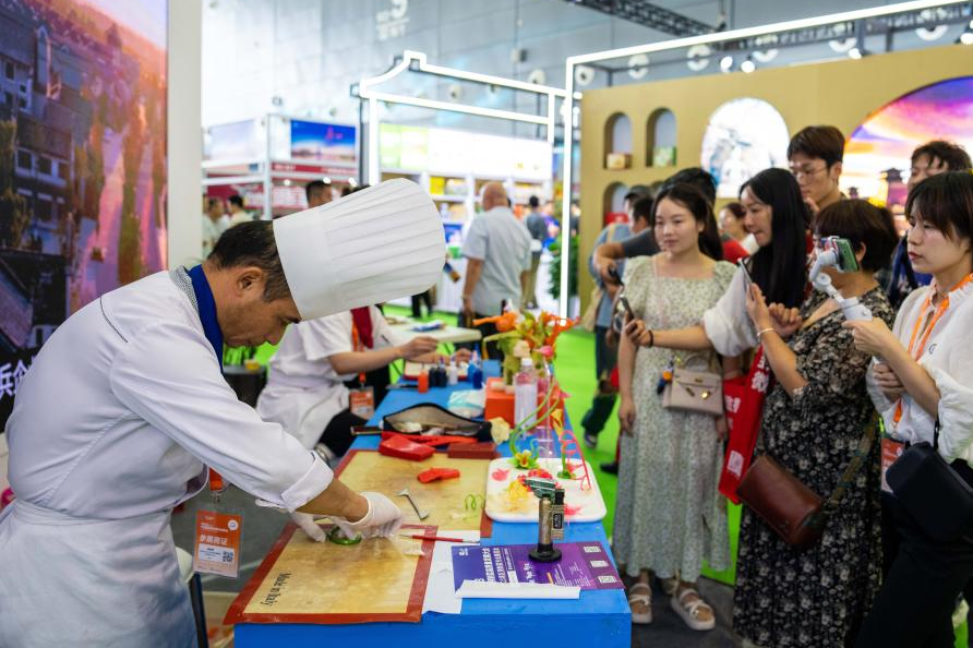 9月15日,在長(zhǎng)沙國(guó)際會(huì)展中心,參展商在展示廚藝。