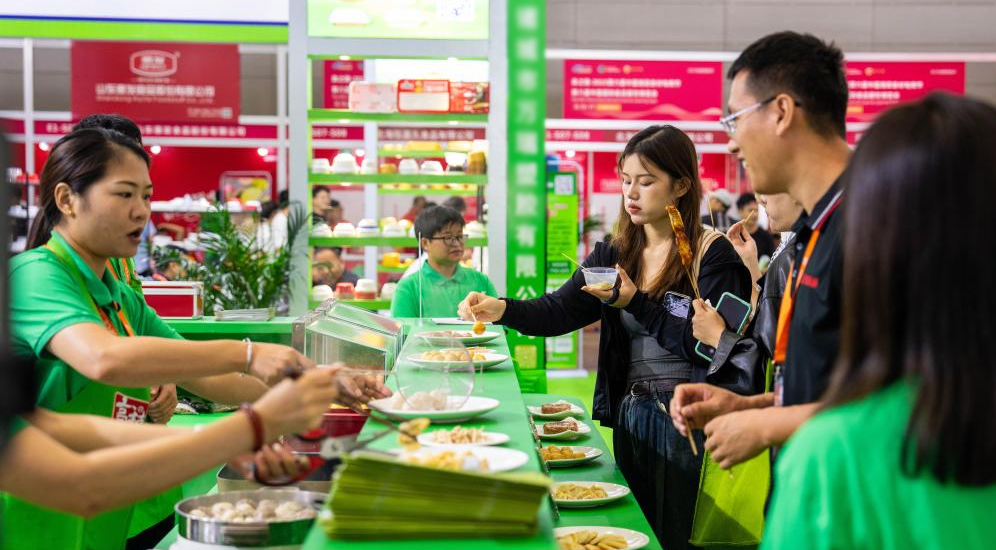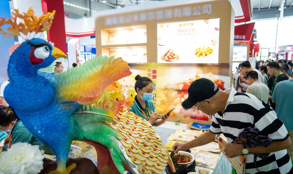 9月15日,在長(zhǎng)沙國(guó)際會(huì)展中心,觀(guān)眾在品嘗小吃。