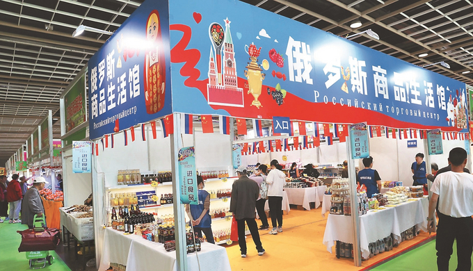 4月27日,第十八屆江蘇春季食品商品展覽會(huì)在南京國(guó)際展覽中心舉行。展會(huì)匯聚全國(guó)各地美食,涵蓋糧油、飲料、干果炒貨等,還開(kāi)設(shè)了進(jìn)口食品區(qū)。圖為市民在“俄羅斯商品生活館”選購(gòu)。記者 宋寧 攝