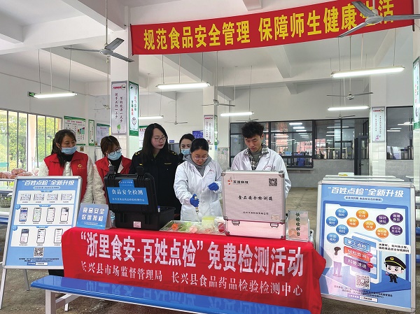 近日,浙江省湖州市長興縣市場監(jiān)管局聯(lián)合長興縣食品藥品檢驗檢測中心,開展“浙里食安·百姓點檢”校園食品免費檢測活動,筑牢校園食品安全防線,防范校園食品安全事故發(fā)生。此次檢測主要圍繞校園食堂的果蔬開展農藥殘留檢測,通過邀請老師和學生家長代表參觀果蔬的克百威、啶蟲脒等農藥殘留項目快速檢測過程,讓其了解食品檢測的基本流程,督促學校從嚴從實從細做好校園食品安全管理。