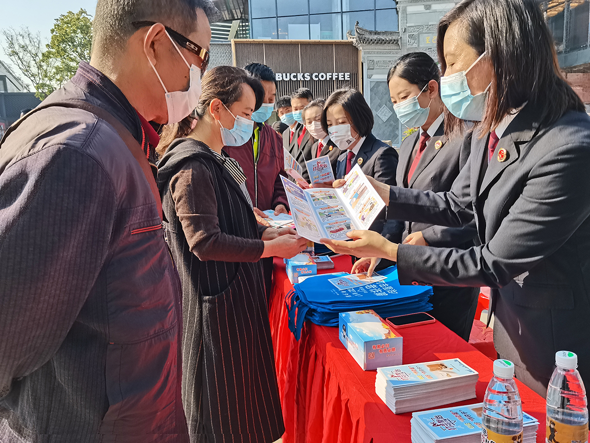 10月22日,安徽省蕪湖市委政法委組織市直有關(guān)單位在蕪湖古城開(kāi)展政法系統(tǒng)“改作風(fēng)、優(yōu)服務(wù)、促發(fā)展”作風(fēng)建設(shè)年成果展及秋季政法重點(diǎn)工作進(jìn)社區(qū)宣傳活動(dòng)。圖為法官、檢察官向群眾宣傳反電詐相關(guān)知識(shí)。