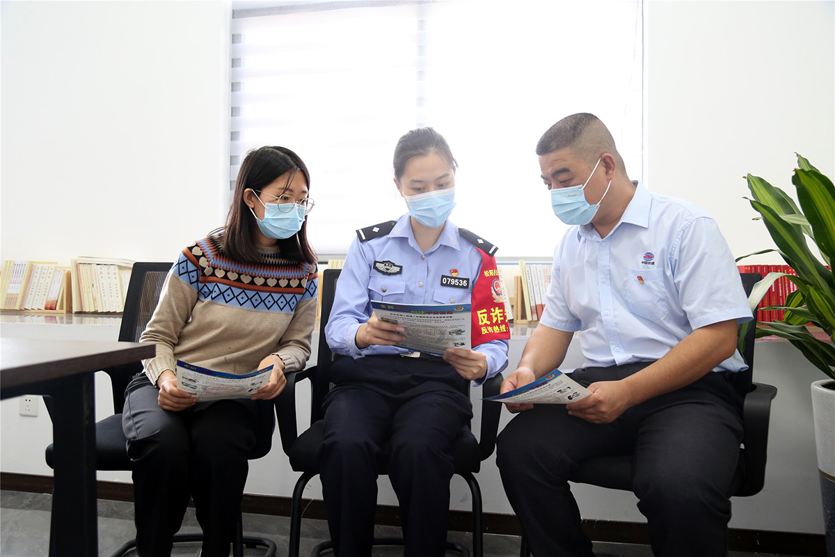 日前,浙江省松陽縣公安局組織民警深入轄區(qū)村莊、企業(yè)、工地、學(xué)校開展針對新型電信詐騙安全防范宣傳。民警通過走訪、張貼橫幅標(biāo)語等宣傳方式,提升轄區(qū)群眾對新型電信詐騙的安全防范。