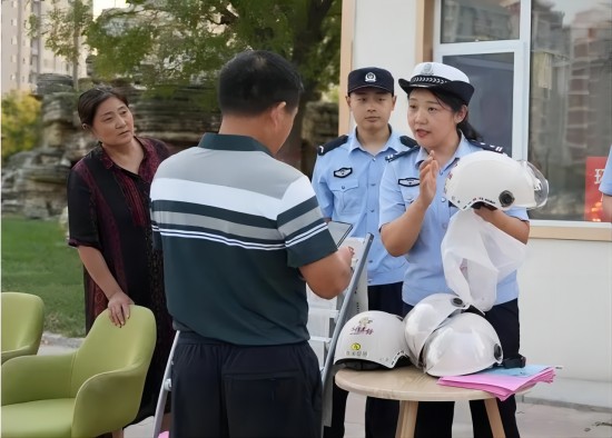 9月19日上午,山東省濱州市陽信縣公安局在翠島湖公園“學(xué)雷鋒驛站”開展反詐“心防”共享頭盔投放領(lǐng)取活動,此次推出的“梨小俠”反詐“心防”共享頭盔以守住“錢袋子”、護航“平安路”為主題,在陽信縣“學(xué)雷鋒驛站”首次推廣使用。