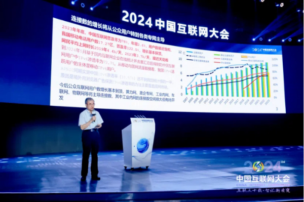 7月9日,由中國互聯(lián)網協(xié)會主辦的2024(第二十三屆)中國互聯(lián)網大會在北京國家會議中心開幕。大會以“互聯(lián)三十載 智匯新質變”為主題,工業(yè)和信息化部總工程師趙志國、北京市人民政府副秘書長許心超出席開幕式并致辭,原郵電部部長、原信息產業(yè)部部長吳基傳,原信息產業(yè)部部長王旭東,工業(yè)和信息化部原部長、中國工業(yè)經濟聯(lián)合會會長李毅中,第十四屆全國政協(xié)常委、經濟委員會副主任,工業(yè)和信息化部原部長苗圩,中國工程院院士、中國互聯(lián)網協(xié)會專家咨詢委員會主任鄔賀銓,中國通信學會名譽理事長、國際電信聯(lián)盟前秘書長趙厚麟,中國電子學會理事會黨委書記,工業(yè)和信息化部原總工程師張峰,工業(yè)和信息化部信息通信科技委常務副主任兼秘書長、工業(yè)和信息化部原總工程師韓夏,中國互聯(lián)網協(xié)會副理事長兼秘書長、中國信息通信研究院院長余曉暉等多位重要嘉賓出席開幕式。中國互聯(lián)網協(xié)會理事長尚冰致歡迎辭。