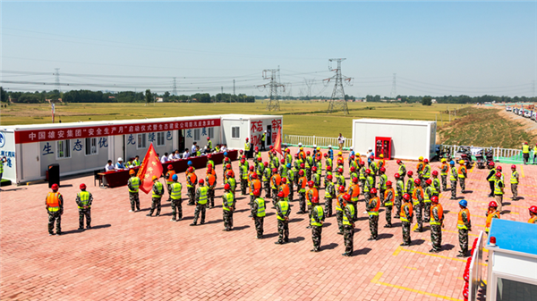 6月3日,雄安集團在南拒馬河防洪治理工程指揮現(xiàn)場舉辦“安全生產(chǎn)月”啟動儀式暨生態(tài)建設(shè)公司防汛應急演練活動。中國雄安官網(wǎng)記者馬夢迪 攝