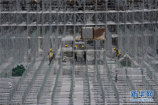 京雄城際鐵路雄安站總建筑面積47萬平方米,地上3層,地下2層,其中地下主體結(jié)構(gòu)將于近期完成,即將轉(zhuǎn)入地上主體結(jié)構(gòu)施工。 新華社記者 邢廣利 攝