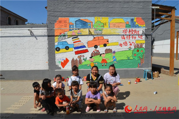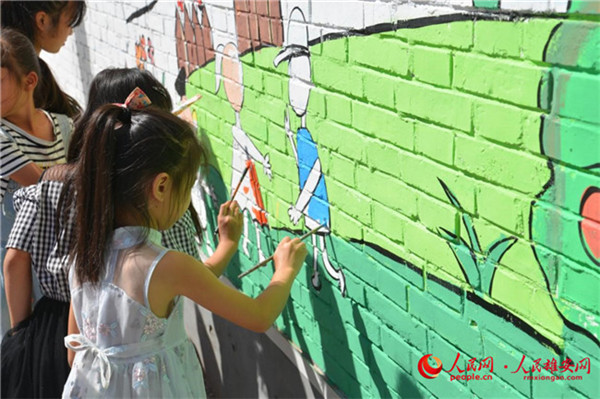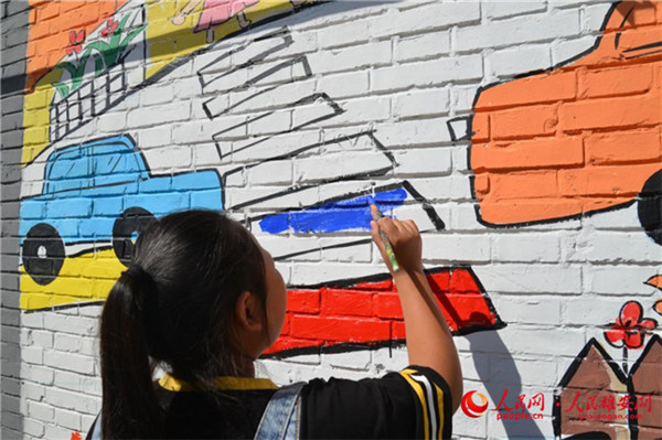 人民網(wǎng)雄安9月3日電 “安全童行 鄉(xiāng)繪美好”兒童友好鄉(xiāng)村公益彩繪活動日前在雄安新區(qū)雄縣北沙口鄉(xiāng)大莊村舉辦,村里的孩子們在來自北京的志愿者的帶領(lǐng)下,用畫筆描繪著充滿童趣的交通安全主題墻繪。