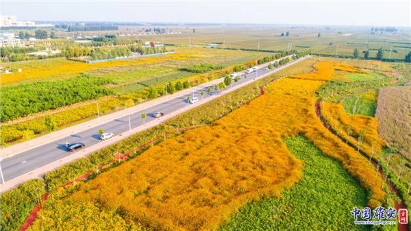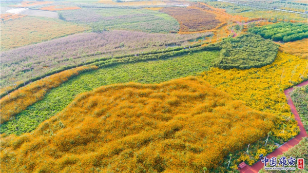 從遠處俯瞰花海公園,黃色成為主色調,一股秋日溫馨之感涌上心頭。中國雄安官網(wǎng)記者毛鶴然 攝