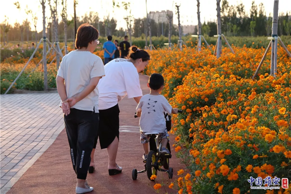 傍晚時分,人們在公園里散步賞花,享受著花兒帶來的甜美。中國雄安官網(wǎng)張?zhí)旎?攝