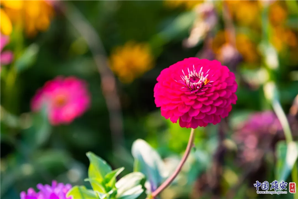 卯足了勁兒綻放的百日菊,正享受著人們欣賞的目光。中國雄安官網(wǎng)記者毛鶴然 攝