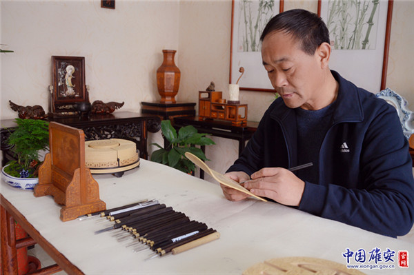 雄安非遺項(xiàng)目《京簧竹刻》傳承人王樂修。王樂修供圖