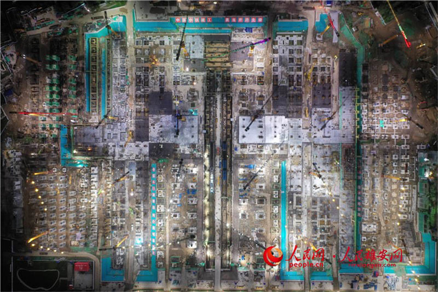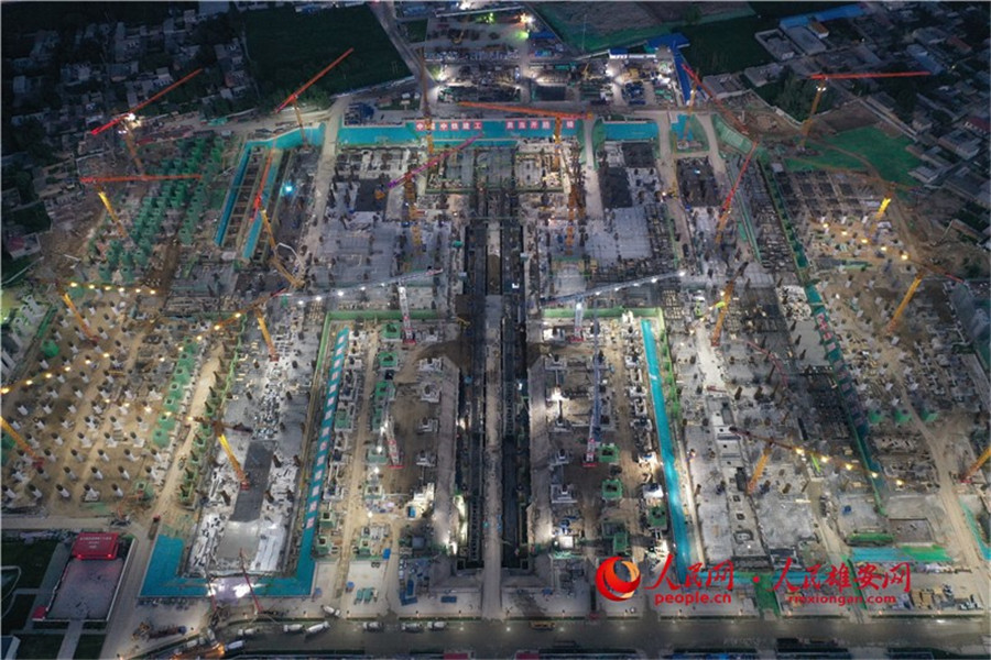 人民網(wǎng)雄安9月25日電 記者從中建三局獲悉,雄安新區(qū)首個重大交通項目——北京至雄安城際鐵路雄安站站房鋼結(jié)構(gòu)工程地下主體結(jié)構(gòu)日前完工。
