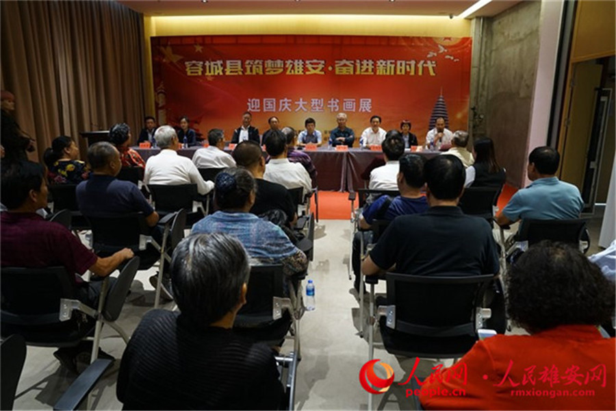 人民網(wǎng)雄安9月25日電 “筑夢雄安、奮進新時代”大型書畫展今天在雄安新區(qū)容城縣開幕,旨在迎接新中國成立70周年。