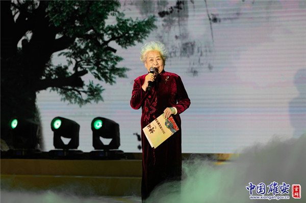著名朗誦藝術(shù)家虹云現(xiàn)場朗誦《我要歌唱一棵老槐》。中國雄安官網(wǎng)記者毛鶴然 攝