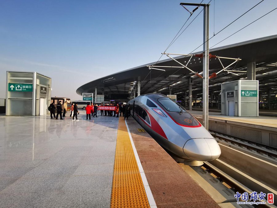 12月27日,在雄安站,乘坐C2702次列車的旅客在列車前拍照留念。劉東堯 攝