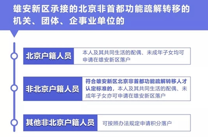 答:除雄安新區(qū)承接的北京籍轉(zhuǎn)移人口、引進(jìn)的人才、原籍雄安新區(qū)的大中專(zhuān)院校學(xué)生、直系親屬投靠且按相關(guān)規(guī)定可在雄安新區(qū)直接辦理落戶的人員外,在雄安新區(qū)合法穩(wěn)定就業(yè)并居住的非雄安新區(qū)戶籍人員,符合本辦法規(guī)定條件申請(qǐng)積分落戶的,適用本辦法。