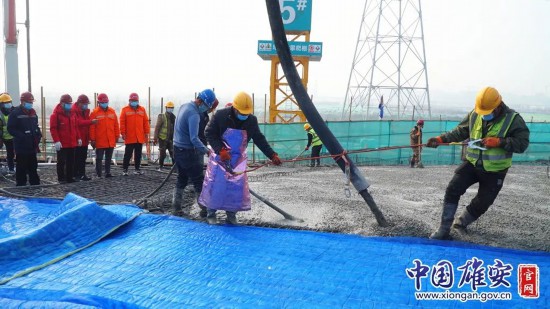 建設(shè)單位中國(guó)雄安集團(tuán)生態(tài)建設(shè)公司把該項(xiàng)目作為一號(hào)工程,在新區(qū)黨工委、管委會(huì)和雄安集團(tuán)領(lǐng)導(dǎo)下,認(rèn)真貫徹落實(shí)河北省委、省政府決策部署,全力保質(zhì)量、保進(jìn)度、保安全、保成本、保廉潔,堅(jiān)決完成建設(shè)施工任務(wù)。施工單位北京城建集團(tuán)于2020年12月4日收到中標(biāo)通知書(shū)后,克服了時(shí)間緊、任務(wù)重以及冬季施工難度大等困難,發(fā)揚(yáng)鐵軍精神,僅用2個(gè)多月時(shí)間就完成春節(jié)前主體結(jié)構(gòu)封頂?shù)募榷ㄈ蝿?wù)。