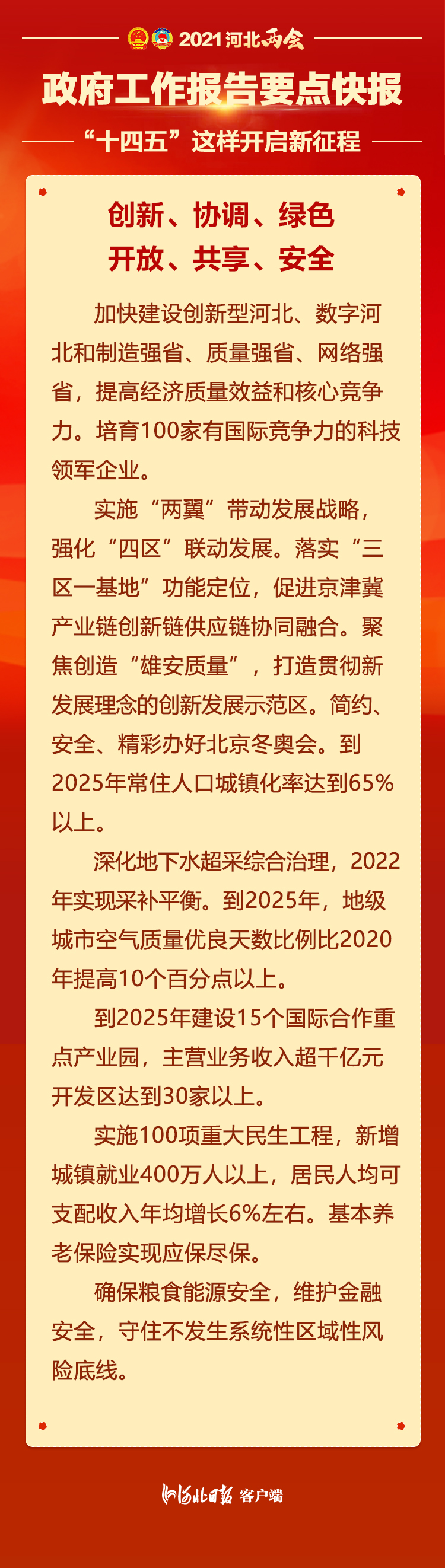 2021河北兩會·政府工作報(bào)告要點(diǎn)快報(bào) |“十四五”河北這樣開啟新征程