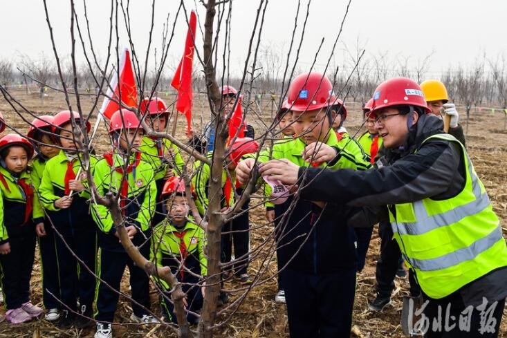 2021年3月11日,“千年秀林”管護(hù)人員與容城縣賈光鄉(xiāng)東張楚小學(xué)的學(xué)生們一起種下“雄安樹”。