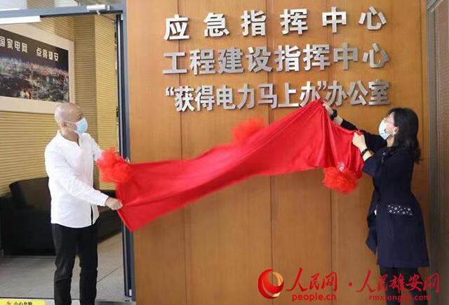 圖為“獲得電力馬上辦”辦公室揭牌。彭海峰/攝