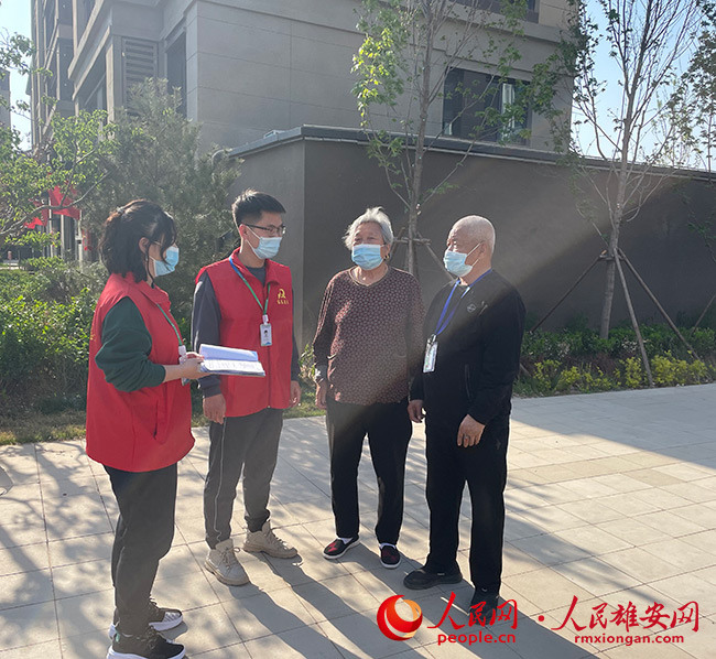 圖為東西孫社區(qū)工作者閆云(左一)、張旭東(右一)在走訪居民。容東管委會(huì)供圖