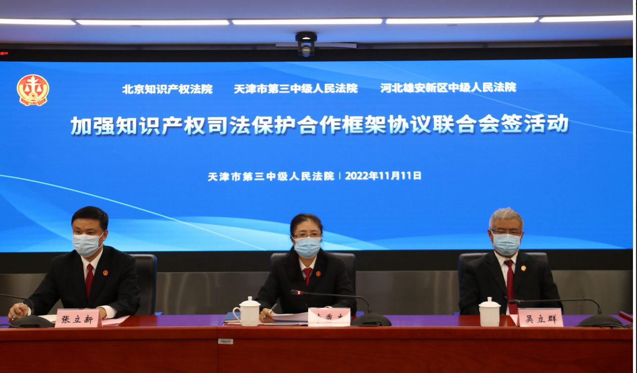 黨的二十大報告明確提出“加強(qiáng)知識產(chǎn)權(quán)法治保障,形成支持全面創(chuàng)新的基礎(chǔ)制度”,同時提出“促進(jìn)區(qū)域協(xié)調(diào)發(fā)展”并將“推進(jìn)京津冀協(xié)同發(fā)展”擺在首位。11月11日,北京知識產(chǎn)權(quán)法院與天津市第三中級人民法院、河北雄安新區(qū)中級人民法院共同簽署《加強(qiáng)知識產(chǎn)權(quán)司法保護(hù)合作框架協(xié)議》,深入貫徹落實黨的二十大精神和黨中央決策部署,開啟京津冀知識產(chǎn)權(quán)協(xié)同保護(hù)事業(yè)新征程,為京津冀協(xié)同發(fā)展和國家創(chuàng)新驅(qū)動發(fā)展戰(zhàn)略實施作出新的更大貢獻(xiàn)。