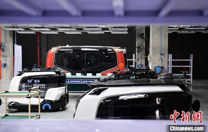 圖為2月17日,雄安新區(qū)科創(chuàng)中心中試基地里的悅享雄安科技有限公司展示的智能車輛。 中新社記者 韓冰 攝