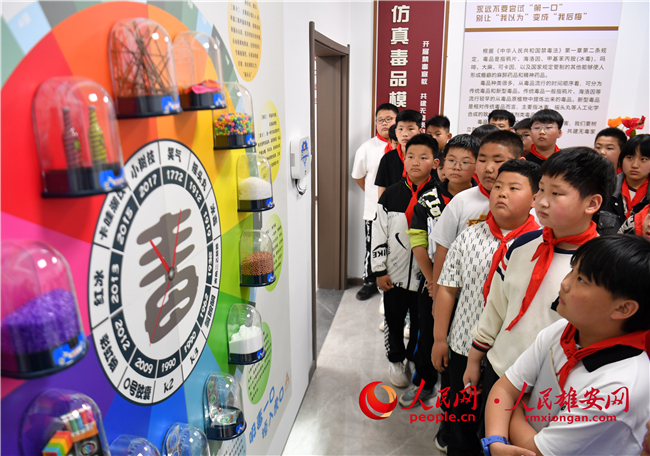 4月19日,雄安容和海棠小學的同學們正在禁毒教育體驗區(qū)內學習禁毒知識。人民網(wǎng) 宋燁文攝