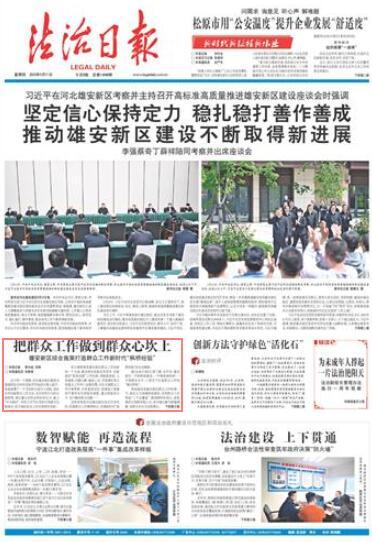 據(jù)《法治日?qǐng)?bào)》記者了解,近年來,雄安新區(qū)一手抓陣地建設(shè),一手建體制機(jī)制,一手提服務(wù)水平,三管齊下打造群眾工作的“雄安樣板”。