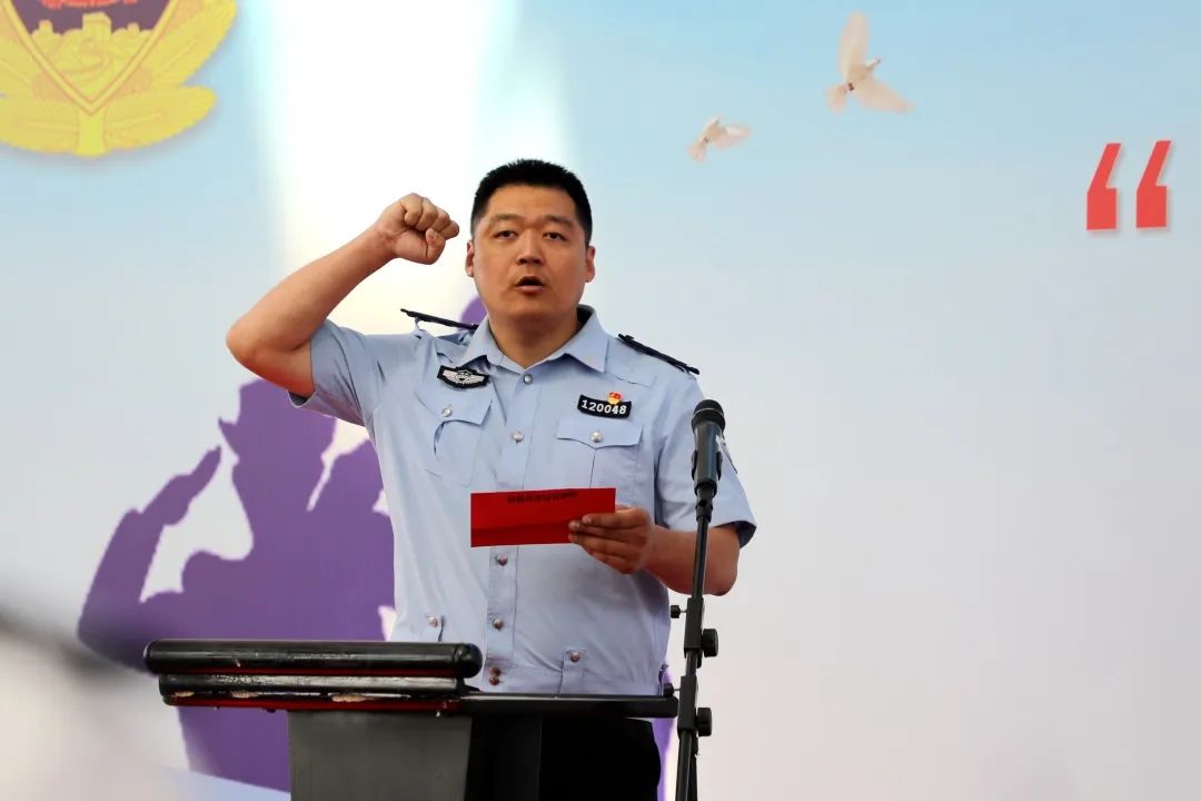 開幕式現(xiàn)場,全體人員隊(duì)列整齊、警容嚴(yán)整,莊嚴(yán)奏唱《中華人民共和國國歌》,裁判員代表和運(yùn)動員代表分別進(jìn)行宣誓。