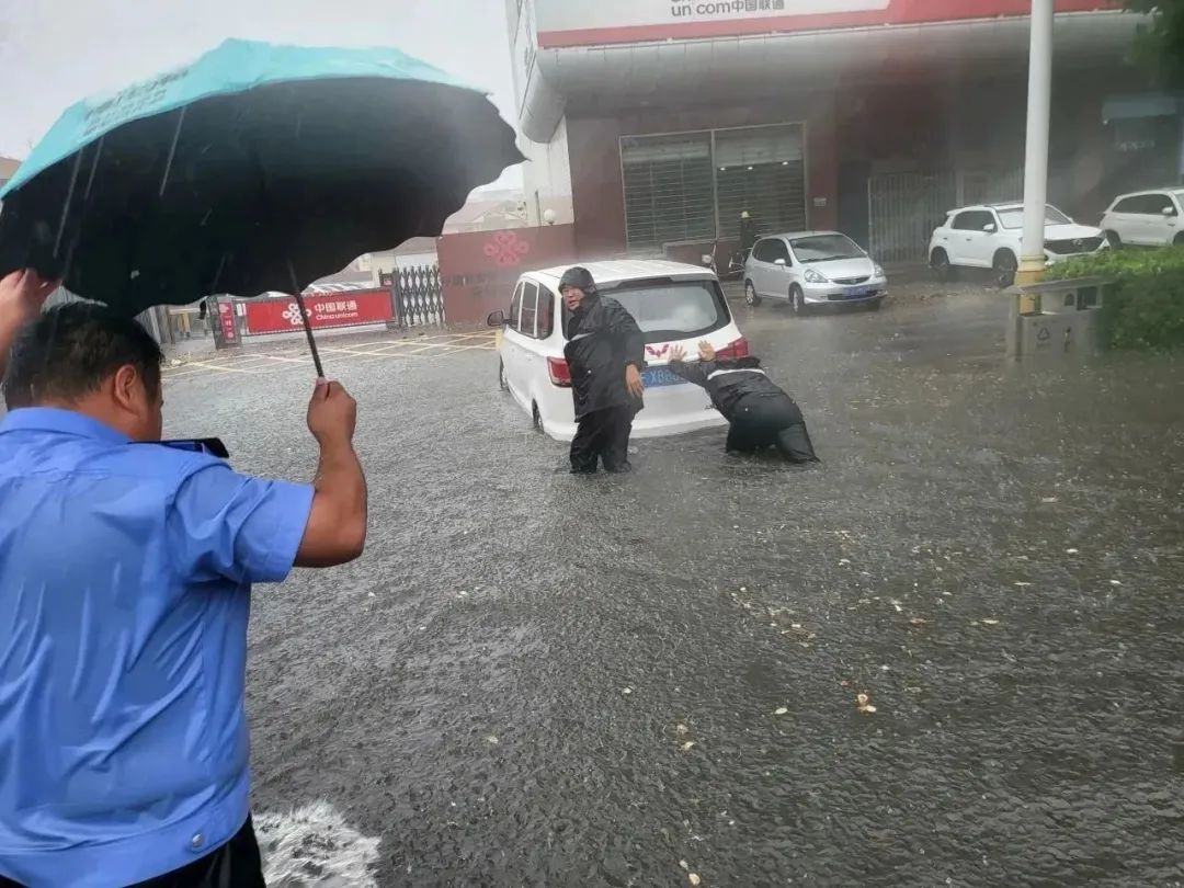 暴雨中,執(zhí)勤民輔警縱然全身濕透,依然堅(jiān)守在各自崗位,及時(shí)排查積水隱患、推移拋錨汽車(chē)、疏導(dǎo)分流車(chē)輛、幫助受困群眾。在積水嚴(yán)重位置安排專(zhuān)人執(zhí)勤,發(fā)現(xiàn)積水影響交通通行的,實(shí)施交通管制,提醒過(guò)往車(chē)輛安全駕駛,確保人民群眾生命財(cái)產(chǎn)安全。