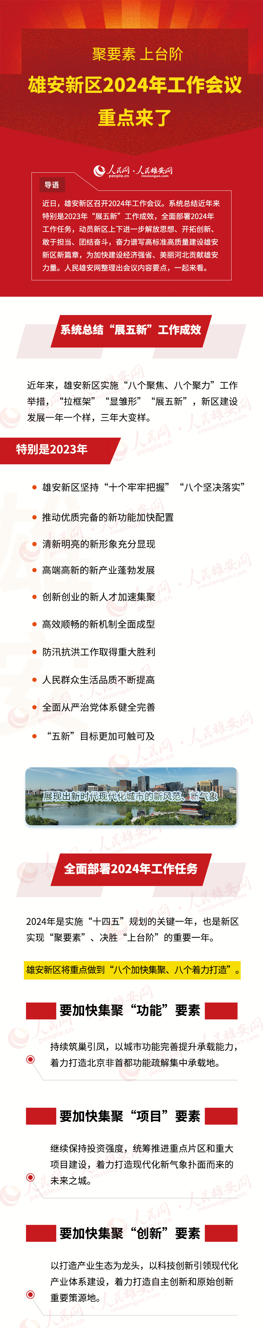 近日,雄安新區(qū)召開2024年工作會議。系統(tǒng)總結近年來特別是2023年“展五新”工作成效,全面部署2024年工作任務,動員新區(qū)上下進一步解放思想、開拓創(chuàng)新、敢于擔當、團結奮斗,奮力譜寫高標準高質量建設雄安新區(qū)新篇章,為加快建設經濟強省、美麗河北貢獻雄安力量。人民雄安網整理出會議內容要點,一起來看。