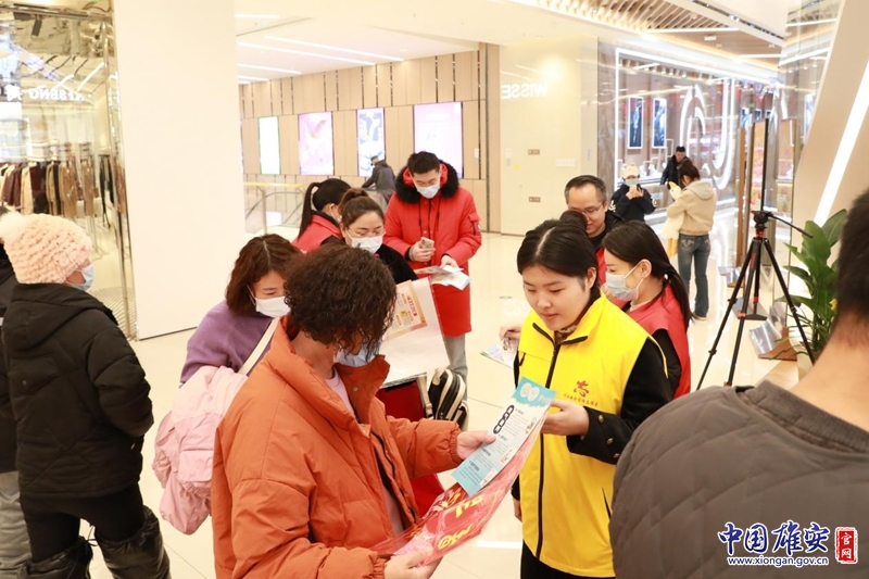 志愿者為過往群眾講解發(fā)放安全宣教資料。中國雄安官網發(fā)