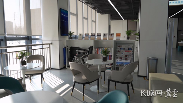 雄安新區(qū)政務(wù)服務(wù)中心新址一樓大廳閱讀書吧。長城網(wǎng)·冀云客戶端記者 李澤凱 攝