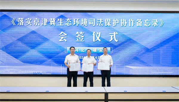 活動中,三家法院共同簽署《落實(shí)京津冀生態(tài)環(huán)境司法保護(hù)協(xié)作備忘錄》,從聯(lián)學(xué)共建、資源共享、審執(zhí)質(zhì)效、多元共治、聯(lián)合調(diào)研、專業(yè)化隊伍建設(shè)以及環(huán)保法治宣傳等方面建立健全了更加緊密高效的京津冀法院環(huán)境資源審判工作協(xié)調(diào)聯(lián)動機(jī)制。