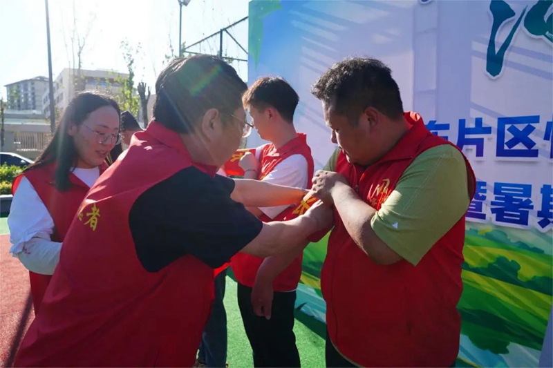 活動現(xiàn)場,悅?cè)菪W(xué)志愿者代表朱皓萱宣讀《“珍愛生命,預(yù)防溺水”倡議書》,與會領(lǐng)導(dǎo)為各組團護河行動志愿服務(wù)隊護河長佩戴了袖章,容東管委會相關(guān)負(fù)責(zé)同志宣布暑期“護河行動”活動正式啟動。