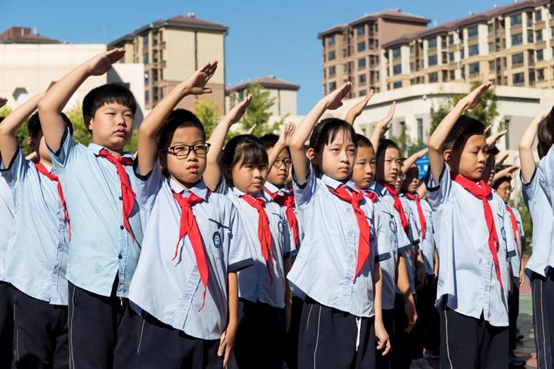 雄安容和樂(lè)民小學(xué)升旗儀式。中國(guó)雄安官網(wǎng)李鑫 攝