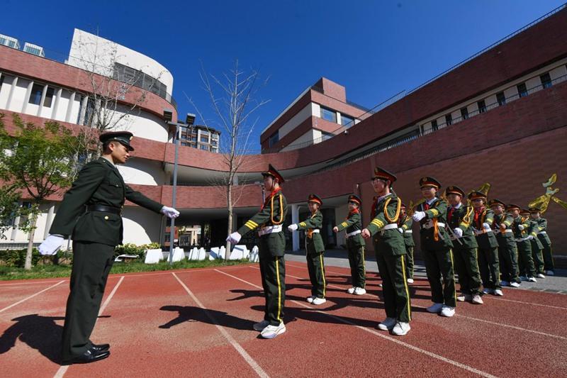 在雄安容和樂(lè)民小學(xué),退役軍人與學(xué)校國(guó)旗護(hù)衛(wèi)隊(duì)一起舉行莊嚴(yán)的升國(guó)旗儀式。學(xué)生們隨后集體參觀國(guó)防特種作業(yè)技術(shù)車輛,退役軍人組織學(xué)校師生開(kāi)展軍事題材互動(dòng)游戲。
