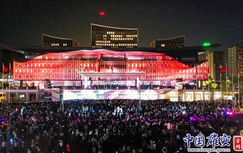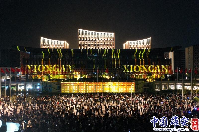 雄安首屆X青年藝術(shù)節(jié)建筑MAPPING光影秀現(xiàn)場(chǎng)。中國(guó)雄安官網(wǎng)發(fā)