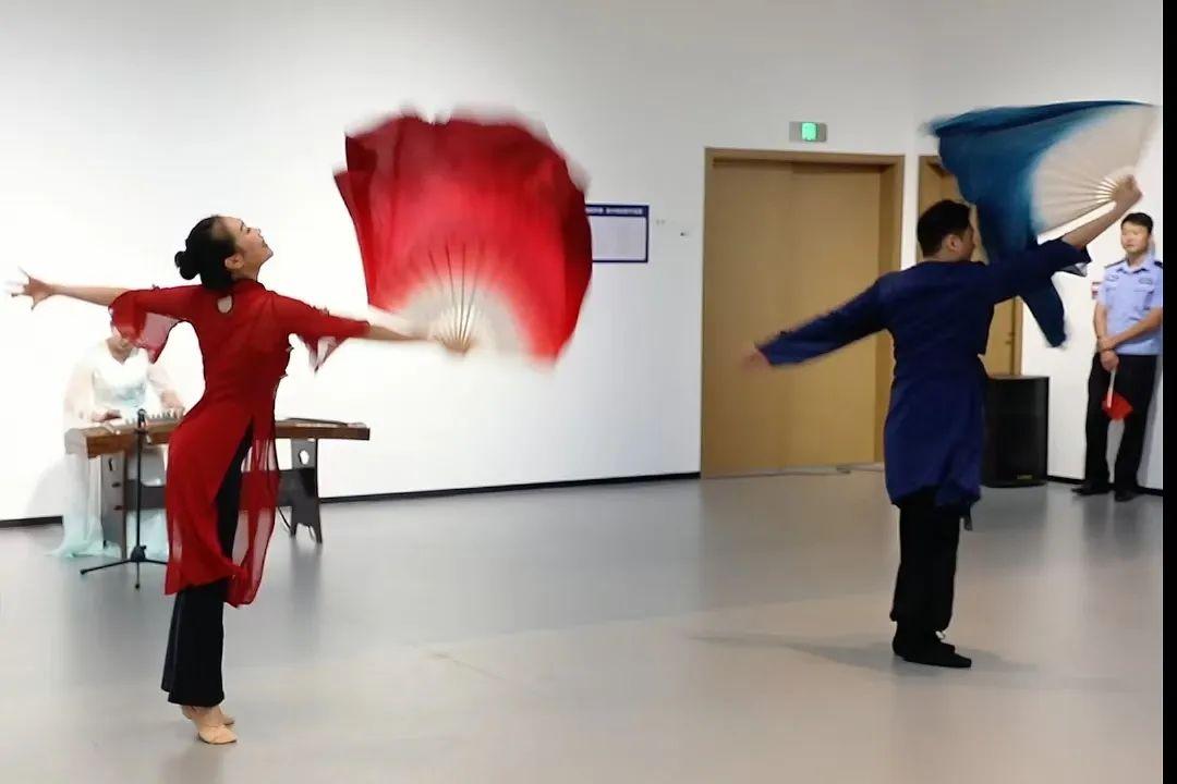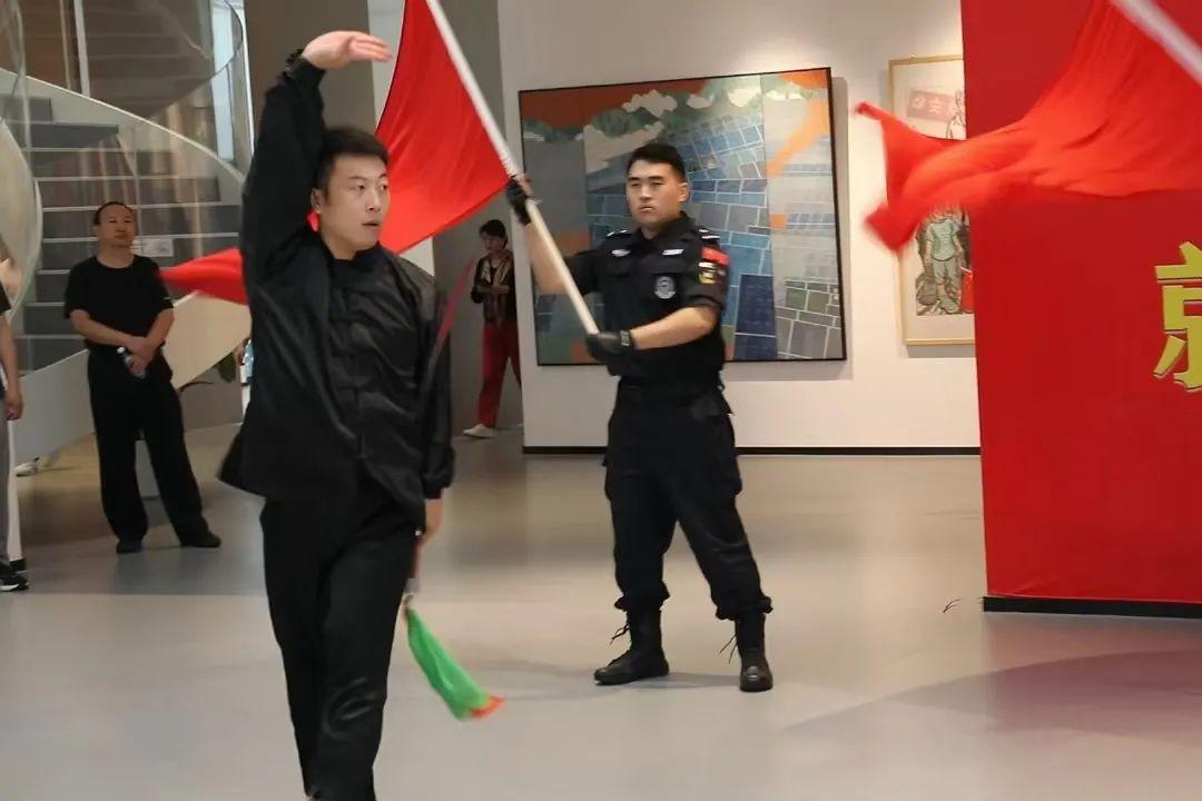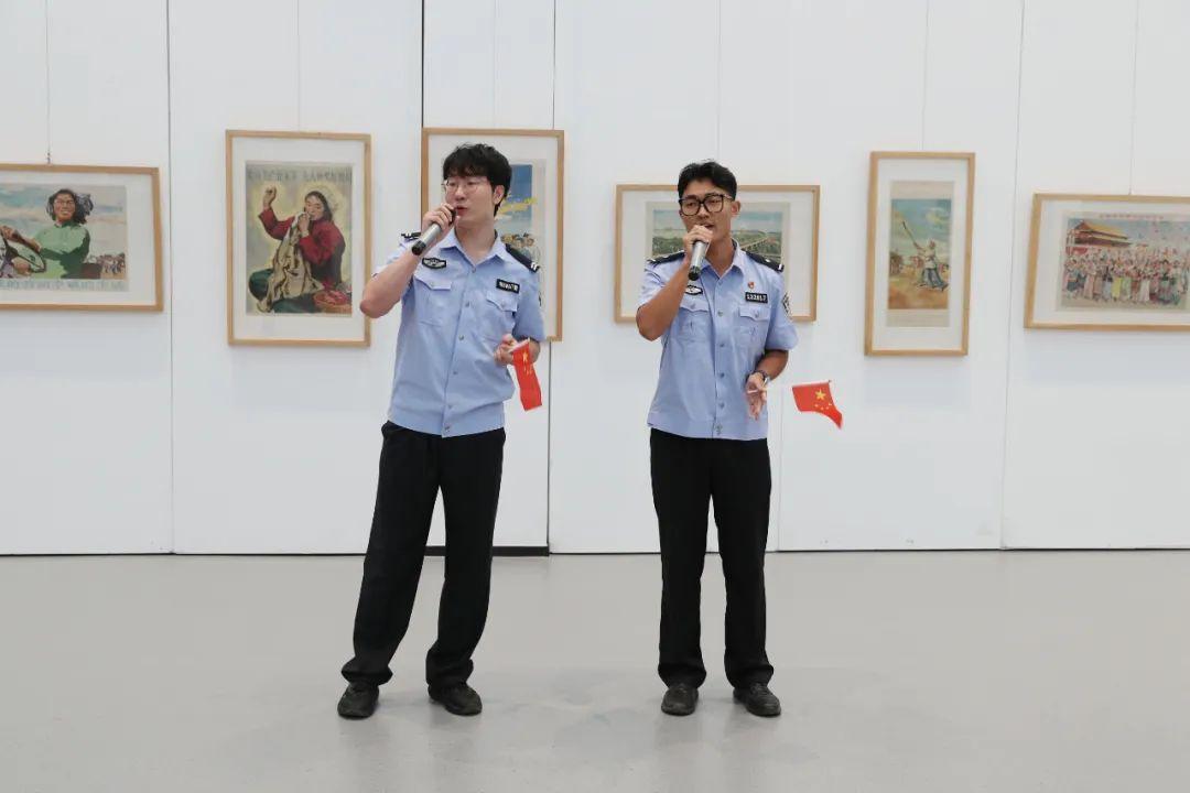觀展結(jié)束后,伴隨著“我和我的祖國,一刻也不能分割。無論我走到哪里,都流出一首贊歌……”歌聲的響起,參展人員移步展廳中央,雄安公安文聯(lián)的表演者們伴隨著莊嚴激昂的旋律依次從人群中走出,《我和我的祖國》《追尋》《多情的土地》《我愛你中國》,一首首振奮人心的歌曲,唱出了慶祝新中國75周年華誕的喜悅,唱出了對祖國的自豪與驕傲。