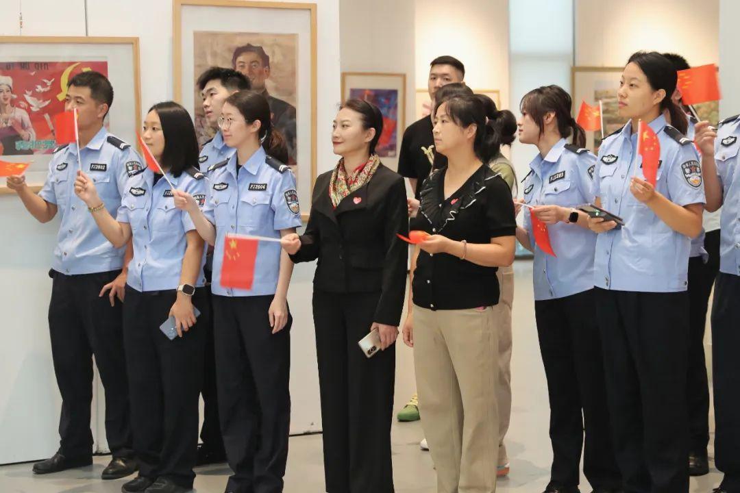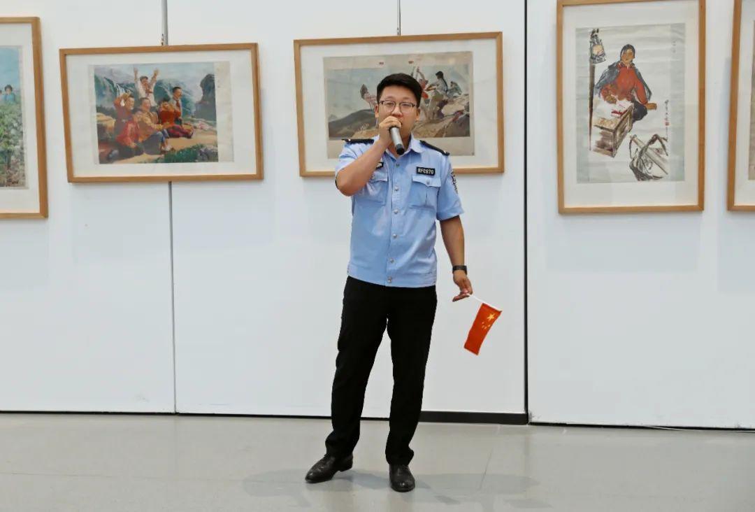 此次展覽主要展示反映新中國成立以來一系列重大歷史事件宣傳畫、年畫,以及描繪新區(qū)建設(shè)發(fā)展的部分美術(shù)作品,百余幅作品如同歷史畫卷般在大家眼前徐徐展開。民輔警穿梭其間,仿佛穿越時空隧道,親眼見證了新中國從百廢待興到繁榮昌盛的壯麗圖景,一筆一劃,都仿佛是祖國前進的鏗鏘足音,在大家心中激蕩起了強烈的共鳴。大家或駐足凝視,或低語交流,分享著各自對新中國發(fā)展歷程的感慨與認識。