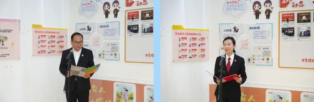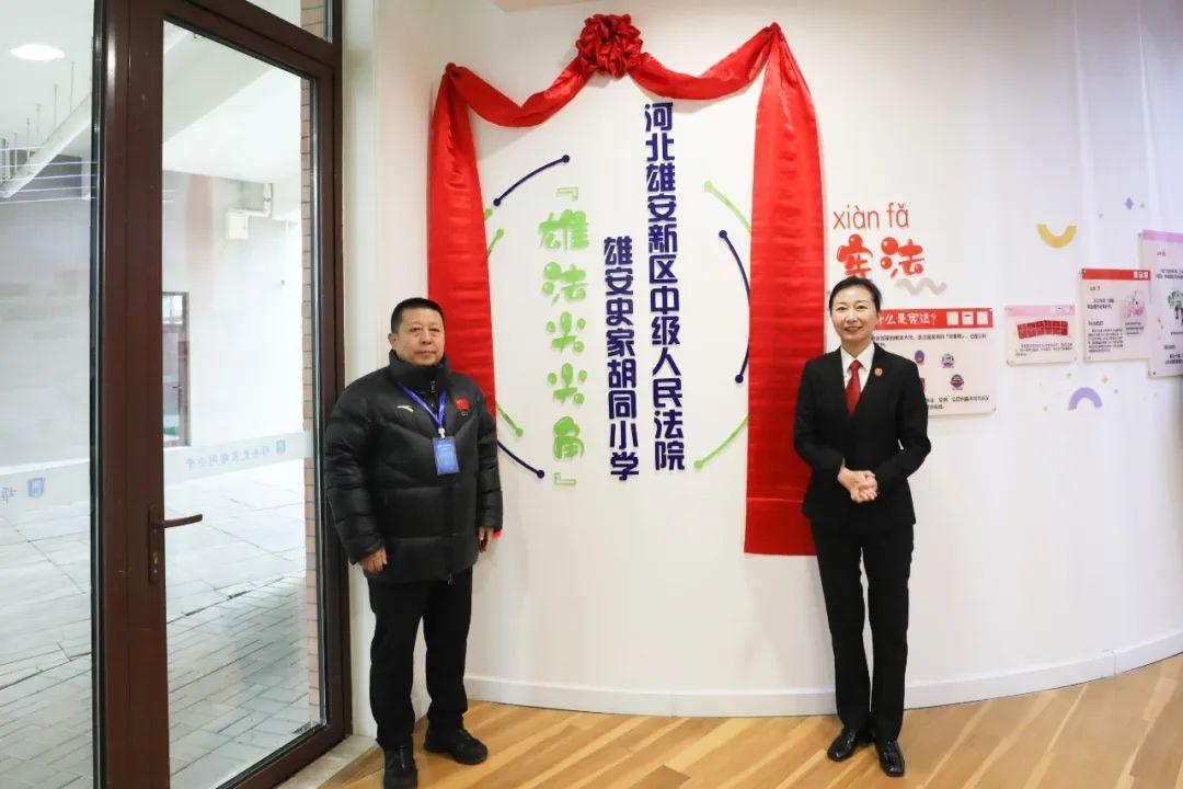 為充分發(fā)揮法治副校長職能延伸作用,做好新區(qū)青少年普法宣傳教育工作,切實增強新區(qū)中小學生法律意識和法治觀念,12月12日,雄安中院與雄安史家胡同小學聯(lián)合開展“雄法尖尖角”法治角揭牌活動。雄安中院黨組副書記、副院長李靜靜、雄安史家胡同小學校長張欣欣、校長助理化國輝出席活動并致辭,雄安中院少審庭干警、雄安史家胡同小學師生代表參加活動。