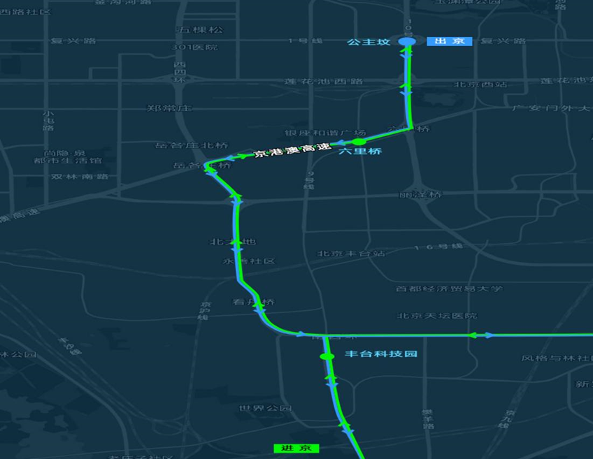 為合理設(shè)置站點,前期北京市交通委員會指導(dǎo)京津冀定制快巴平臺,針對入駐雄安的央企、院校和醫(yī)院進(jìn)行深入調(diào)查研究,采用問卷調(diào)查、實地踏勘等方式摸清通勤需求。北京往返雄安通勤定制快巴在北京地區(qū)設(shè)置3個上下客站點,從公主墳始發(fā),途經(jīng)六里橋地鐵站、豐臺科技園地鐵站。