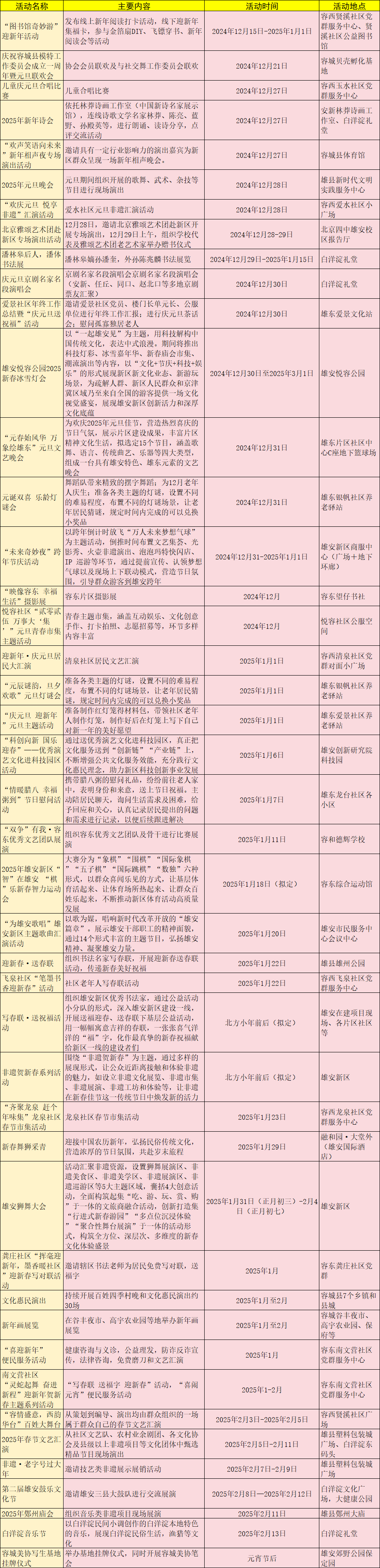 雄安新區(qū)2025年元旦、春節(jié)期間系列文體活動一覽表來啦!