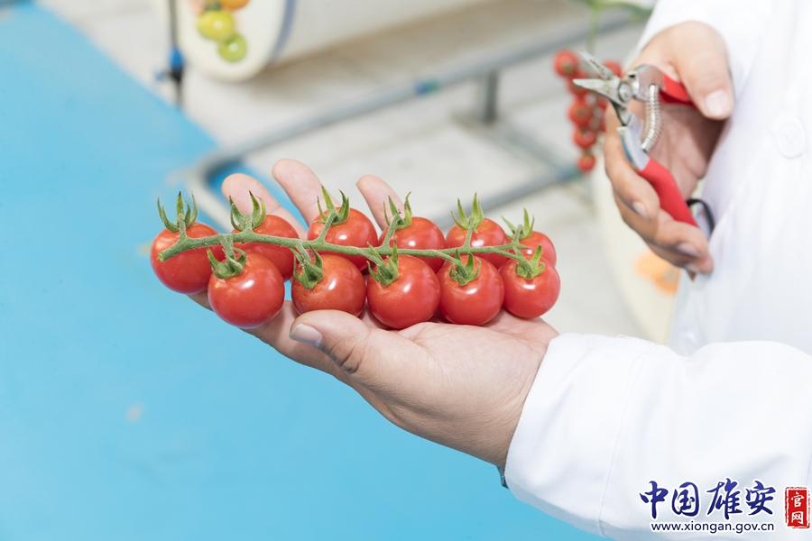 雄安智慧農(nóng)業(yè)科技園種植的“愛索301”紅色串收櫻桃番茄。中國雄安官網(wǎng)李鑫 攝