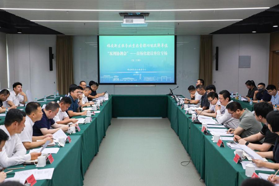 7月24日,雄安新區(qū)服務(wù)北京非首都功能疏解單位第30期“雙周協(xié)調(diào)會”現(xiàn)場。新華社發(fā)